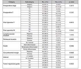 18. Tan Y, Fu D, Li D, Kong X, Jiang K, et al. Predictors and Risk Factors of Pathologic Complete Response Following Neoadjuvant Chemoradiotherapy for Rectal Cancer: A Population-Based Analysis. Front Oncol. 2019 Jun 13;9:497. doi: 10.3389/fonc.2019.00497.
